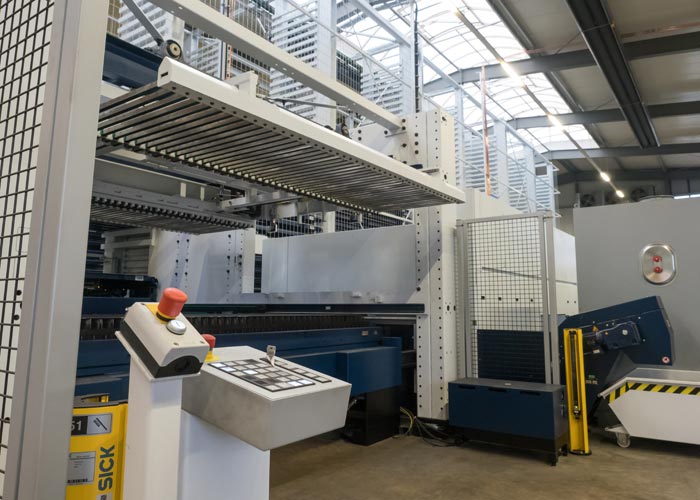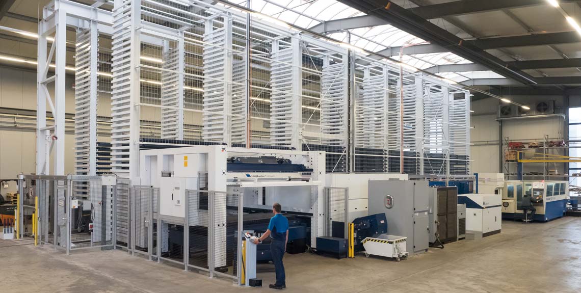 Der Flachbettlaser bietet hohe Geschwindigkeiten, optionale Faserlasertechnologie (fiber) und fortschrittliche Assistenzsysteme für eine automatisierte Fertigung (Serienfertigung). In Kombination mit dem STOPA Regalsystem "LiftMaster Compact" bekommen wir extrem schnelle Zykluszeiten (ca. 65 Sekunden für den Blechwechsel).