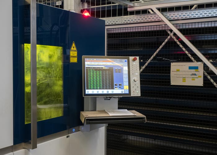 Seit 2018 arbeiten wir mit der TRUMPF TruLaser 5030, ein 2D-Flachbettlaser. Diese hochproduktive Maschine setzen wir primär ein zum präzisen Schneiden von Blechen (Stahl, Edelstahl und Aluminium).